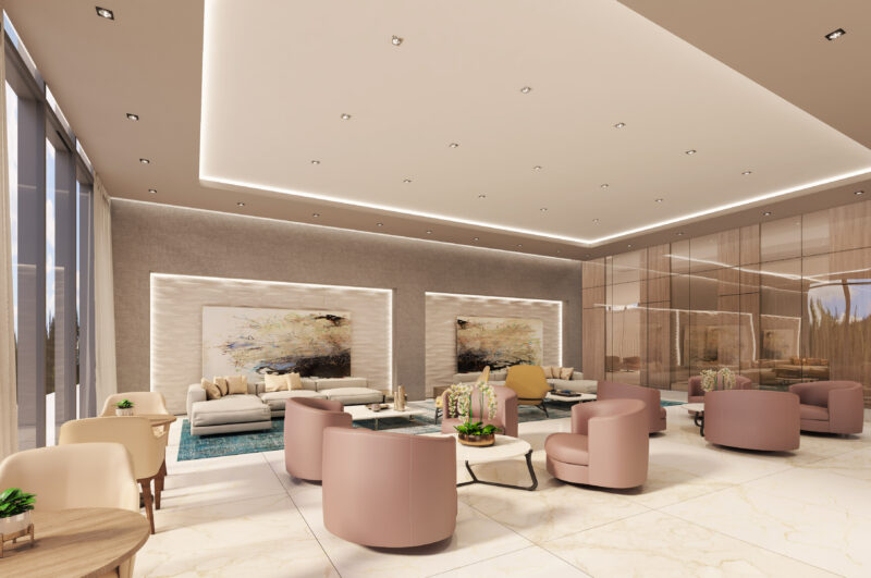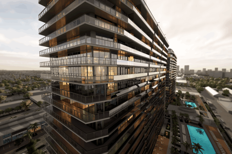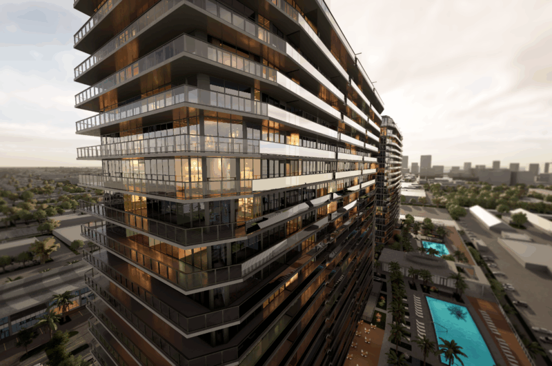 - Dos torres de 25 pisos con 250 residencias en cada una y 9000 m2 de espacio comercial totalmente arborizada, zonas peatonales y parques.